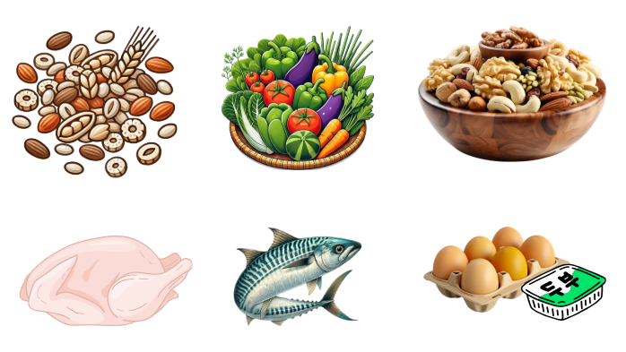 > 단백질이 많은 음식 : 닭고기, 생선, 두부, 계란